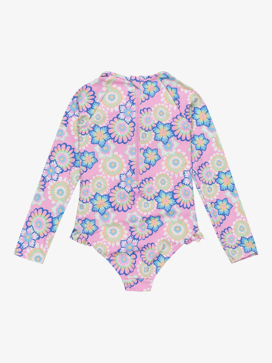 Girls 2-7 Flower Party Long Sleeve One-Piece Rashguard