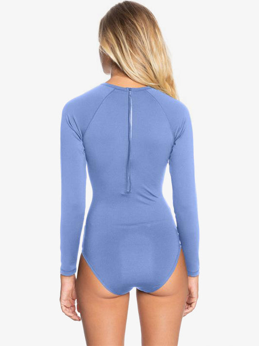 Womens Flowers Wave Long Sleeve Back Zip One-Piece