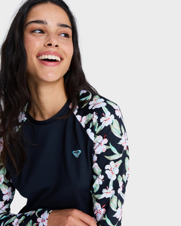 Splash into action with this Women's Long Sleeve Rash Vest. Soft recycled fabric keeps you comfy while 50+ UPF protection shields you from the sun's rays. The fitted cut hugs just right, and the iconic ROXY logo seals the deal. Your new water-sport essential awaits.