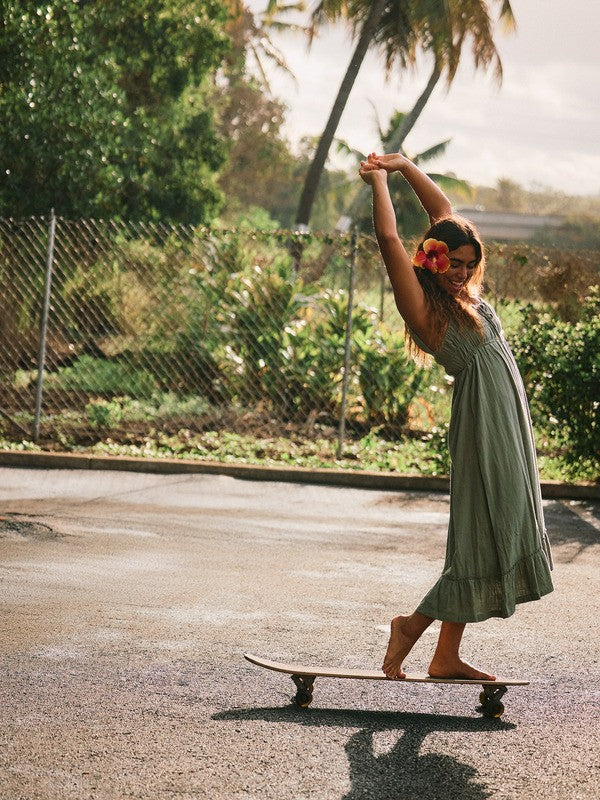 Womens Paradise Winds Flowy Midi Dress With Elastic Bodice Detailing